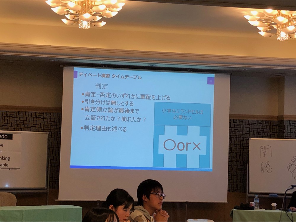 この2つについて、「肯定側」「否定側」「判定(審判)」に分かれてチームディベートを実施。
